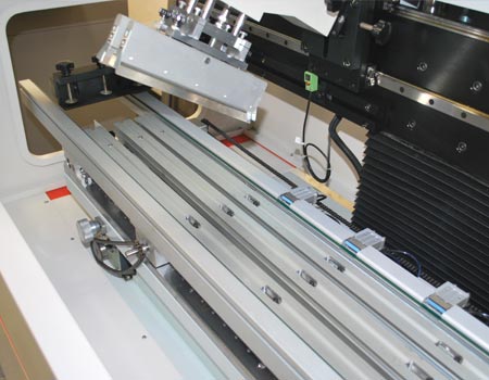 10. 組合式印刷平臺定位PIN,設(shè)定簡單、換裝迅速,適用于單面基板的生產(chǎn)作業(yè);