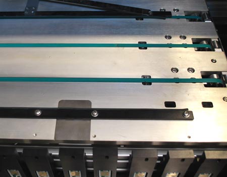 1.電路板傳動(dòng)采用精密電機(jī)帶動(dòng)工業(yè)皮帶配合精密導(dǎo)軌實(shí)現(xiàn),有效提高貼片精度。